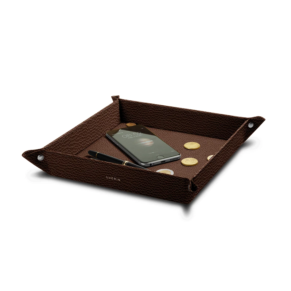 Large Square Catchall Dark Brown  - Pebbled Leather