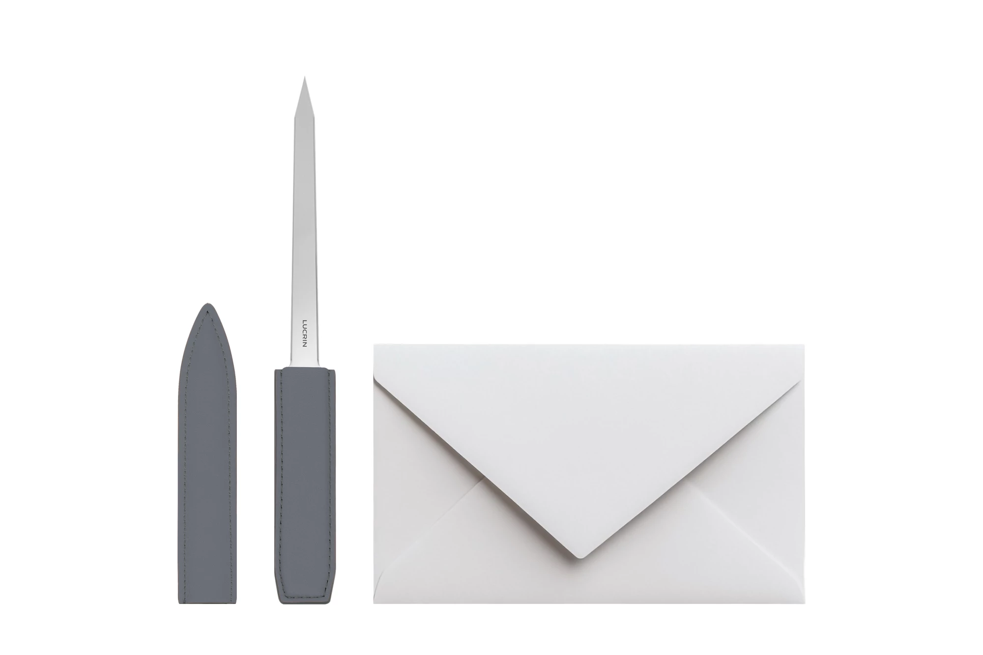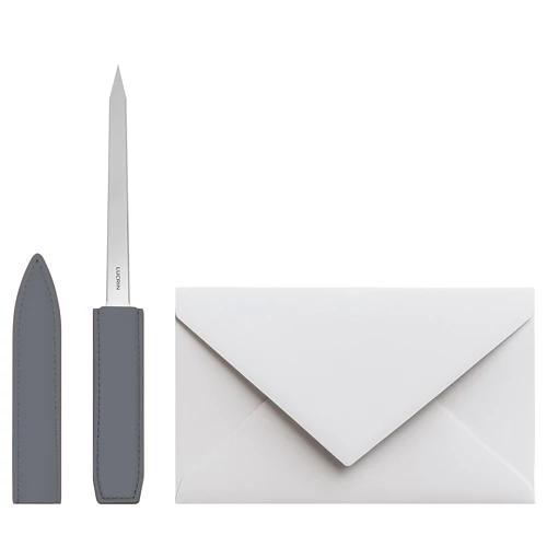 This letter opener will be a favourite of lovers of beautiful objects and accessories. This paperknife combines perfectly elegance and practicability. It possesses a blade of 5.3 inches in silver-coloured brass that allows you to open up envelopes with utmost ease and accuracy. Once you are done using it, this paper knife is kept in its leather sheath, like a sword! Thanks to the leather-covered handle you can be sure that you have a nice grip when using the letter opener.