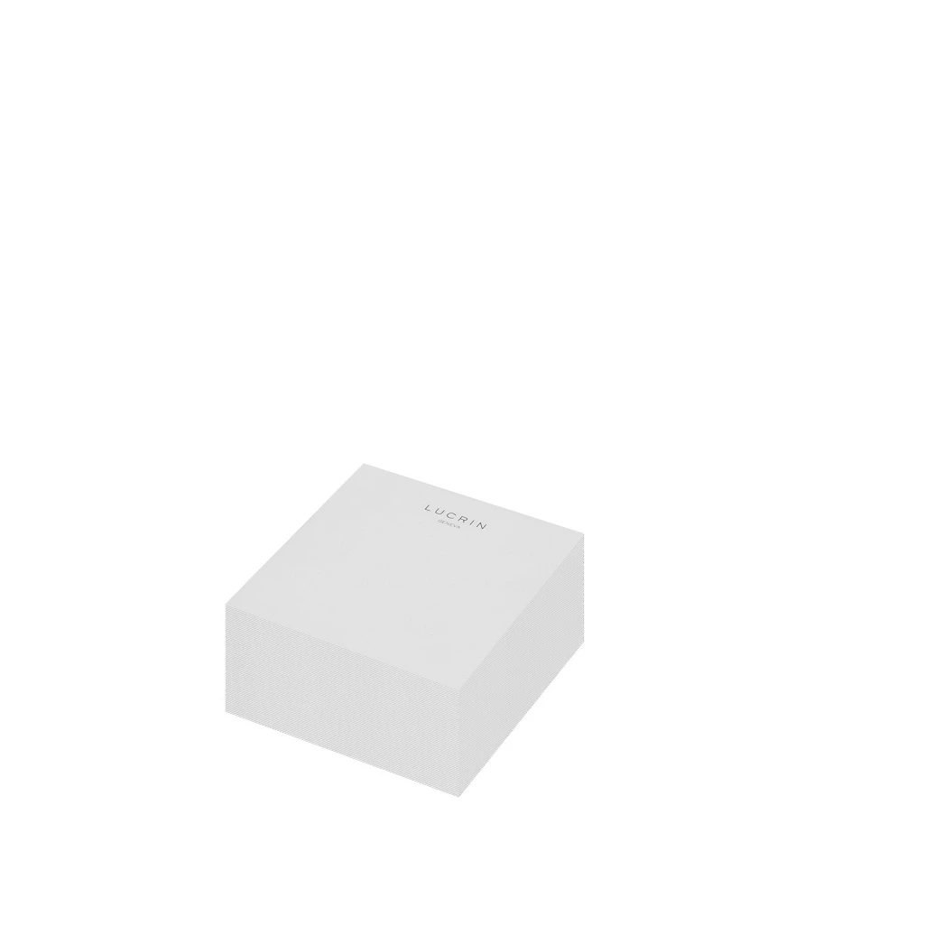 Block of paper sheets (3.5 x 3.5 inches) meant for the memo paper leather holder of LUCRIN (ref.: OS2028). 250 white blank sheets of paper, with the LUCRIN logo printed on the top-center of each page.