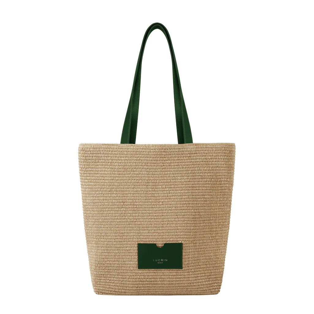 Crafted for the warmer season, this summer tote bag with gusset blends the natural charm of braided raffia with the subtle elegance of a leather finish. The gusseted base adds structure and extra space to the bag — ideal for carrying your summer must-haves, whether you're heading to the beach or into town. Lined with soft cotton, the interior offers space for your essentials — towel, book, or pouch — while a discreet leather pocket keeps your valuable accessories close at hand. Spacious, practical and effortlessly stylish, this raffia tote bag fits right into your summer routine. Personalise your gusseted tote bag now by selecting the leather details!
